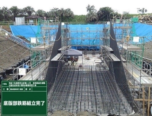 本現場は宮崎県総合運動公園北遊水池に排水機場の下部を作る工事です。