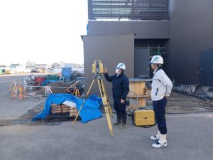 当社ICT担当社員に現場敷地のレベル測定を行ってもらいました。