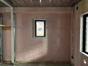 断熱材吹付け・UB(ユニットバス)・サッシ・ガラスの取り付けも完了し、LGS(Light
