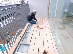 南側のテラスではディアウォール(目隠し壁)を施工しています。