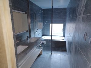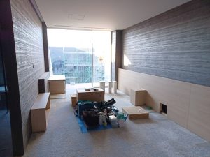 客室では、客室はクロスやカーペット、別途家具工事を施工し、テラスでは再生デッキも取り付けています。