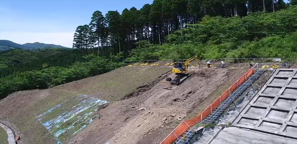 本工事は、法面(斜面)の地滑り抑止工事です。